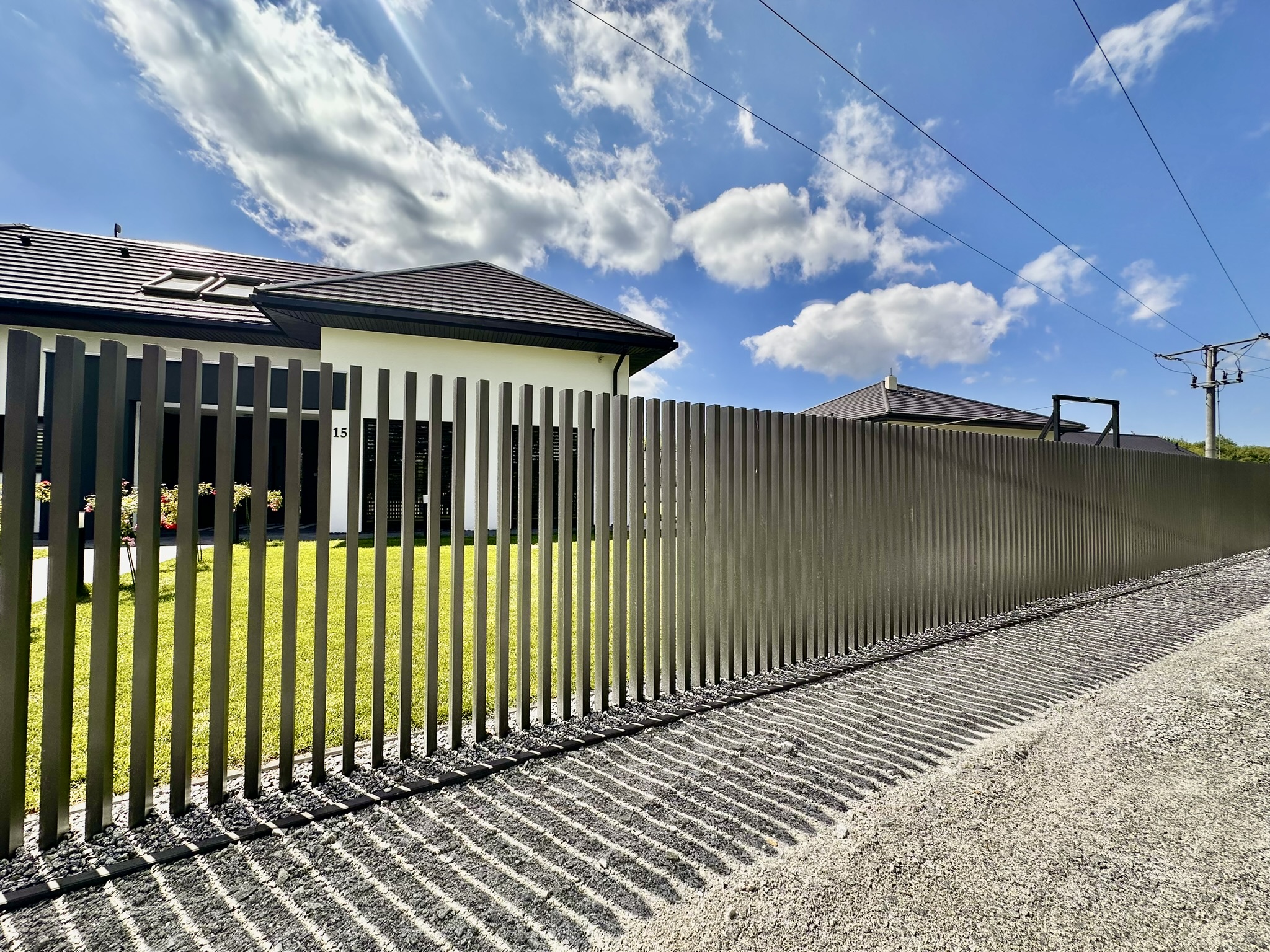 Wzór Sodalit MD3 odznacza się bardzo nowoczesnym wyglądem, trafnie wpisując się we współczesną architekturę. Charakteryzuje się niezwykle lekką konstrukcją, co w połączeniu z oferowanym stopniem przezierności tworzy nowoczesną i estetyczną granicę posesji. Ogrodzenie to stanowi jednocześnie solidną ochronę. Sztywność modułu uzyskiwana jest dzięki przenikaniu przez profil ukrytej, aluminiowej podstawy. Przęsła mogą być osadzone na murkach lub bezpośrednio na fundamencie.