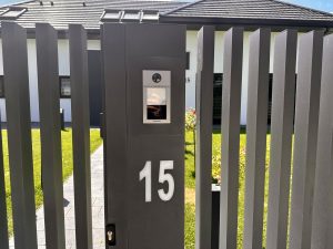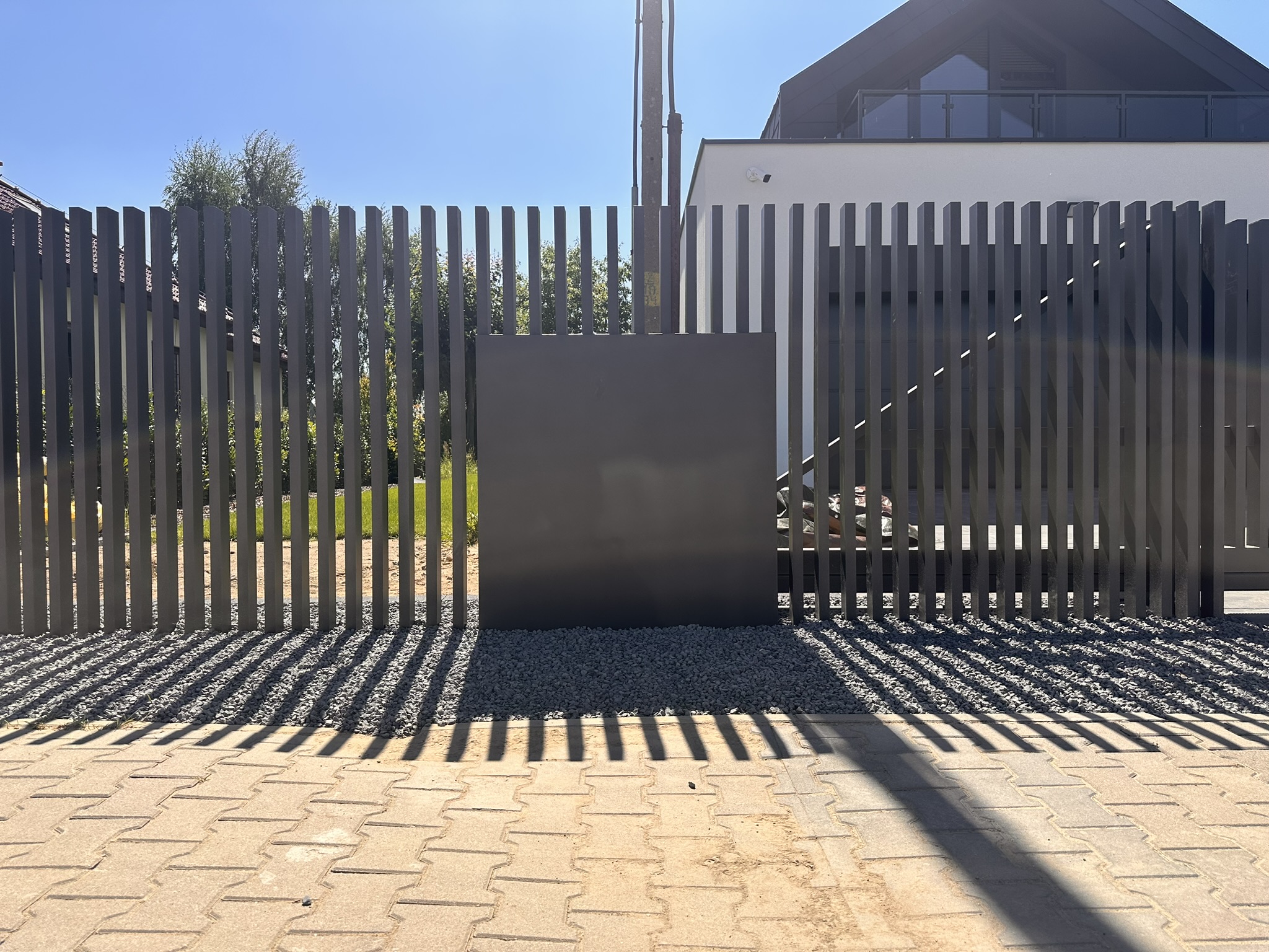 - (d) słupy 140 × 140 mm przystosowane do szybkiego montażu zawiasów, siłowników; z otworami do przeprowadzenia kabli oraz otworem rewizyjnym przygotowanym do montażu centrali: 2 szt.