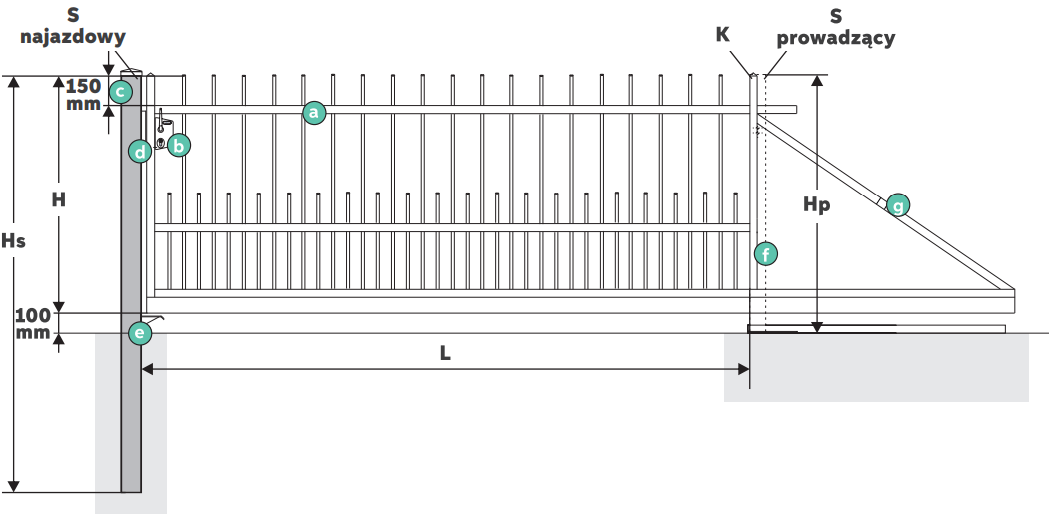 - słup najazdowy: 100 x 100 mm; gdy obok bramy znajduje się CenterBox należy przewidzieć słup najazdowy 120 × 120 mm