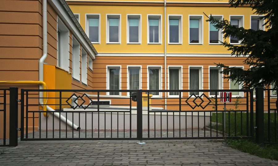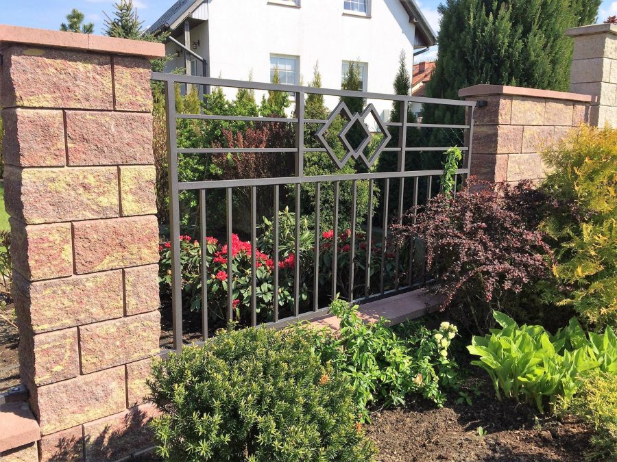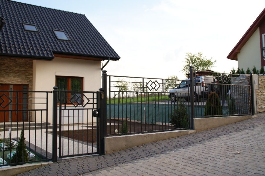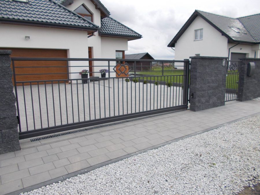 - skrzydło bramy wykonane w technologii przenikania z szyną jezdną 80 × 80, rolką najazdową oraz kątownikiem z listwą zębatą