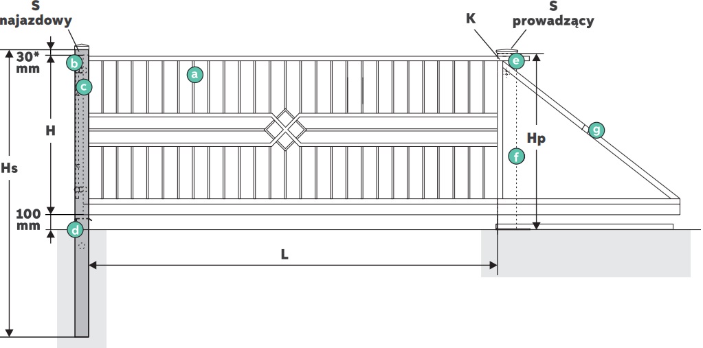 - słup najazdowy: 100 x 100 mm; gdy obok bramy znajduje się CenterBox należy przewidzieć słup najazdowy 120 × 120 mm