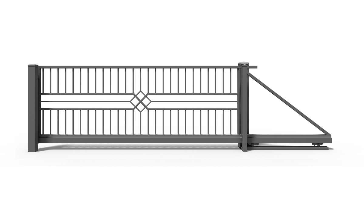 - skrzydło bramy wykonane w technologii przenikania z szyną jezdną 80 × 80, rolką najazdową oraz kątownikiem z listwą zębatą