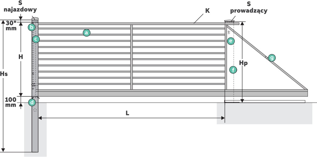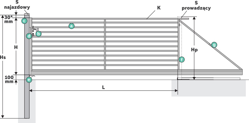 - słup najazdowy: 100 x 100 mm; gdy obok bramy znajduje się CenterBox należy przewidzieć słup najazdowy 120 × 120 mm