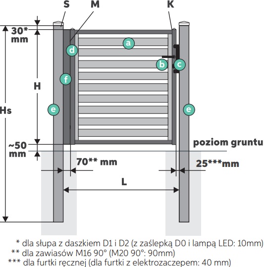 - w przypadku, gdy furtka umieszczona jest na wspólnym słupie z bramą, słupy furtkowe dobierane są wg parametrów bramy