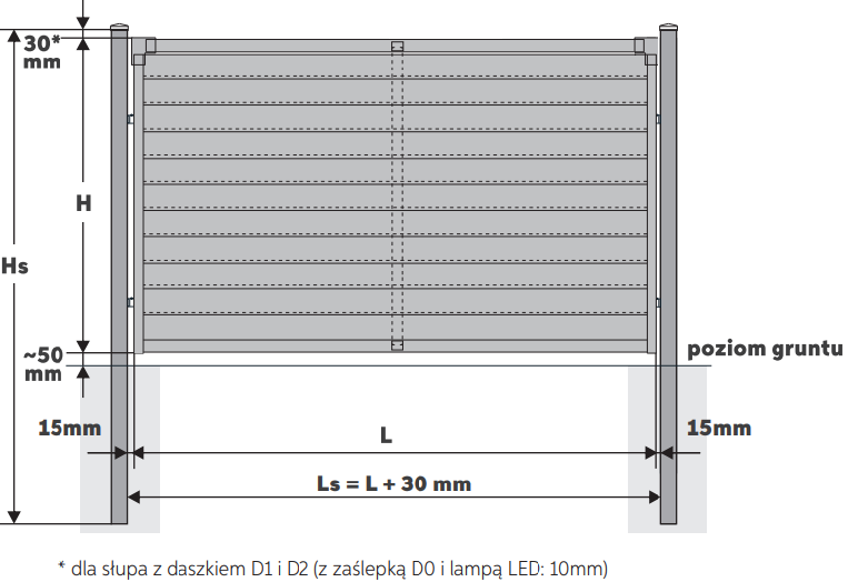 - L – szerokość między słupami
