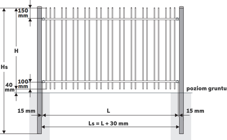 Wymiary zamówieniowe i ich oznaczenia potrzebne do prawidłowego doboru oraz montażu przęsła: