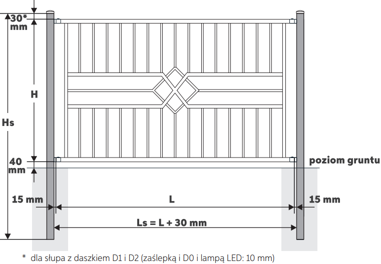 Wymiary zamówieniowe i ich oznaczenia potrzebne do prawidłowego doboru oraz montażu przęsła: