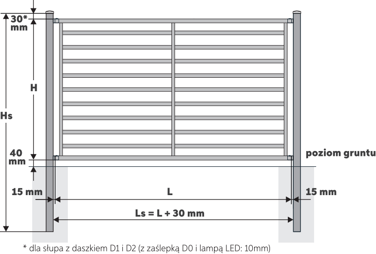 Wymiary zamówieniowe i ich oznaczenia potrzebne do prawidłowego doboru oraz montażu przęsła: