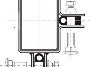 Łącznik przeznaczony do montażu podmurówek wibroprasowanych do słupka prostokątnego. Uchwyt jest ocynkowany ogniowo i malowany proszkowo.
